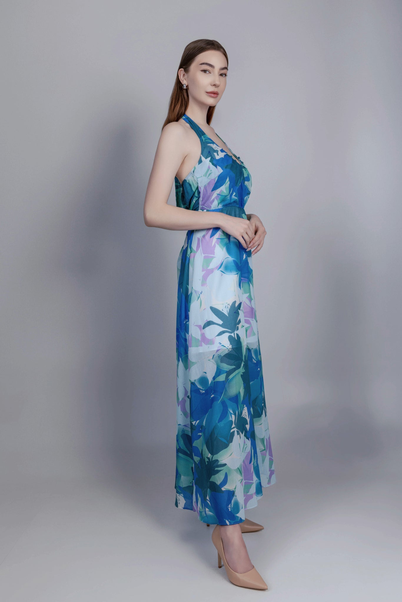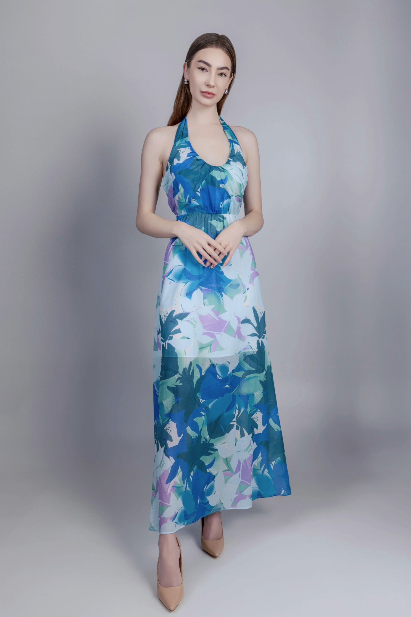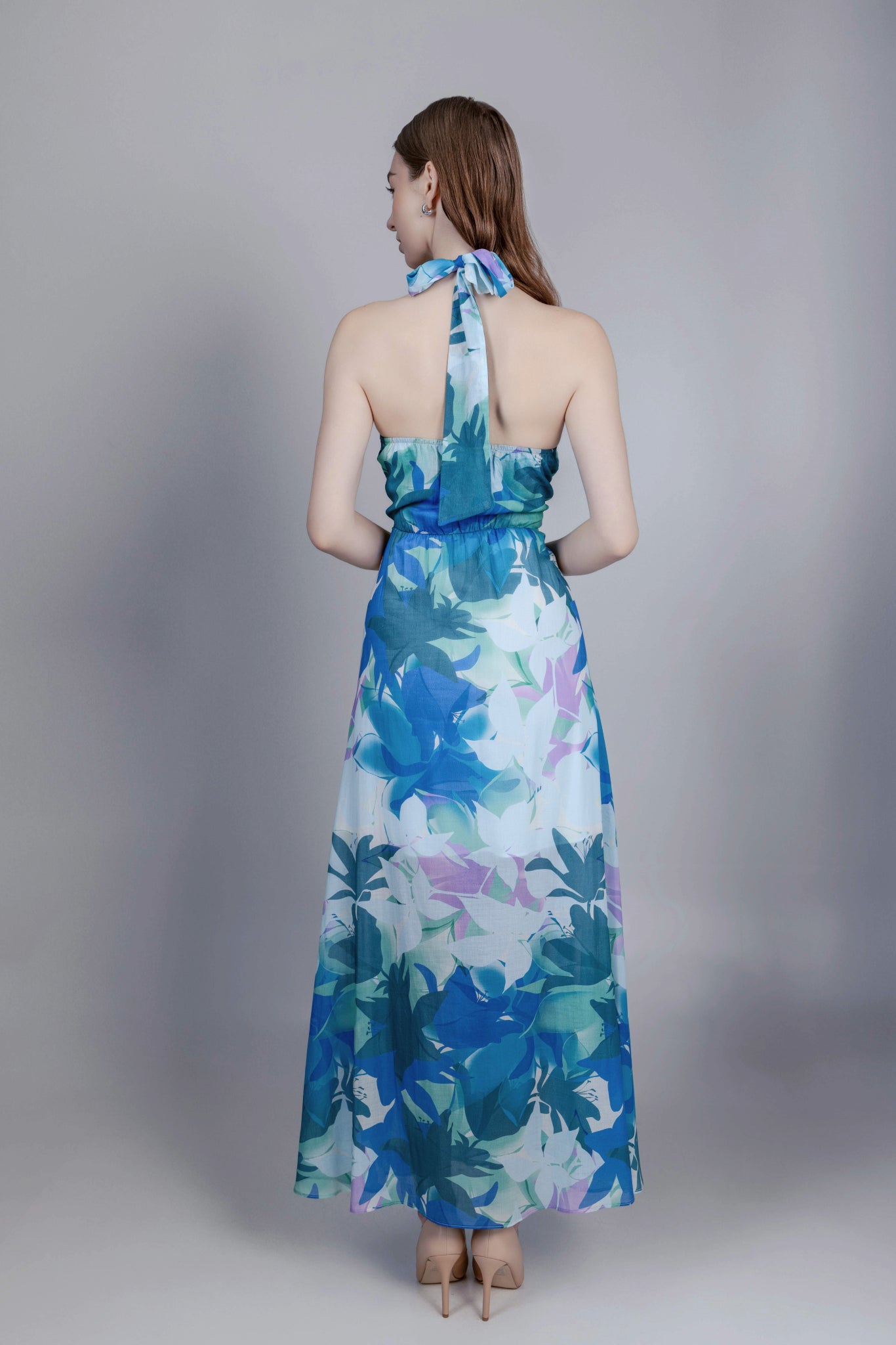 Introducing Abito Donna, the elegant cotton maxi dress designed and made in Italy. With a beautiful flower pattern and a neckline that can be tied around the neck for a perfect fit, this dress is perfect for any occasion. Crafted with high-quality cotton, it offers both comfort and style.